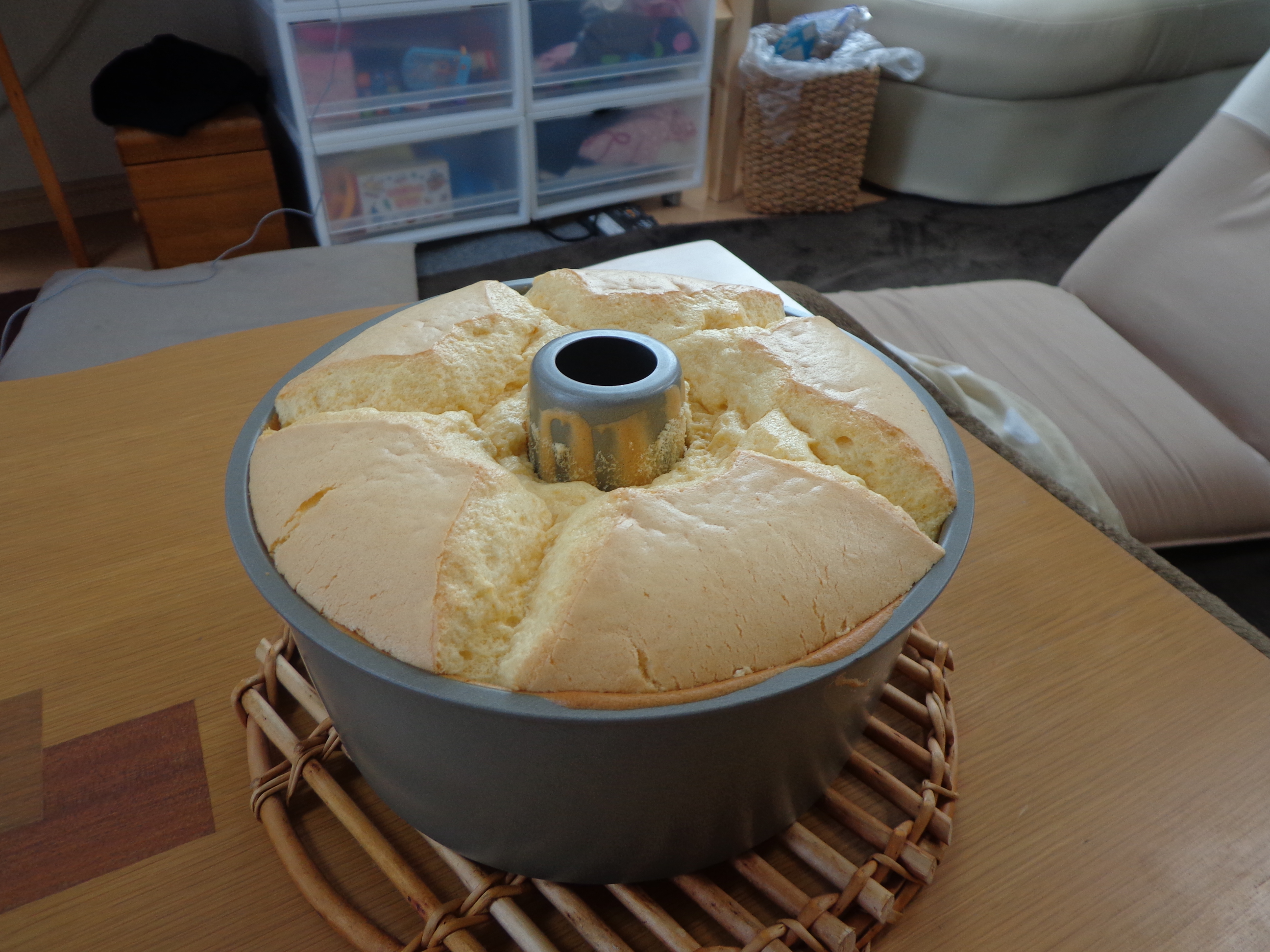 焼けた!こんな感じ。卵と小麦粉だけのシンプルシフォンケーキです。